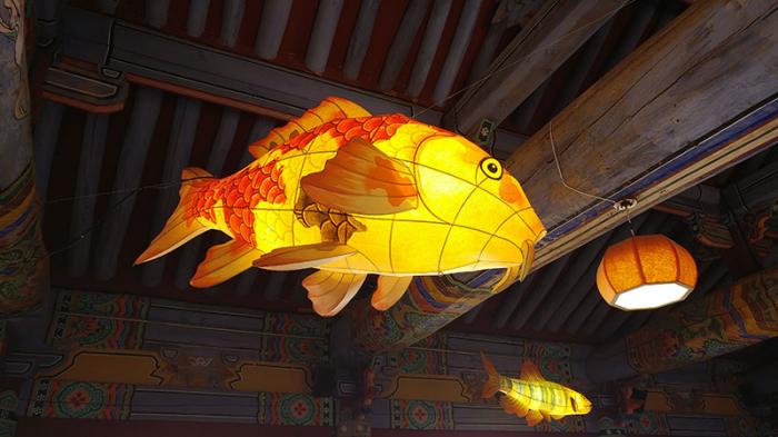 그래서 수행자는 물고기처럼 늘 총명하게 눈을 뜨고 목표를 향해 수행에 매진하라는 의미가 있다고 합니다. ^^*